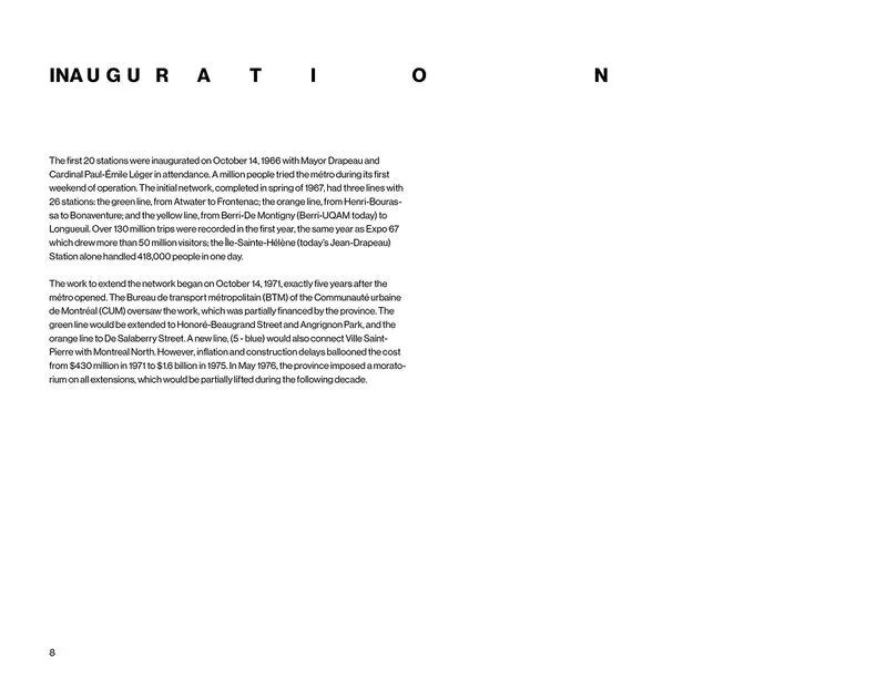 This project focused on editorial design using the STM (Société de transport de Montréal) metro system as subject. The goal was to explore how the visual and spatial elements of public transportation could be expressed through typography, layout, and rhythm.